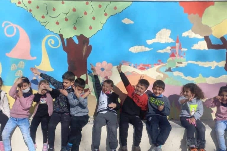 Bursa'nın Mudanya ilçesinde Proje Çekmece gönüllüleri, kırsal mahalledeki Akköy İlkokulu'nu çizgi film kahramanları ve doğa temalı resimlerle donattı.