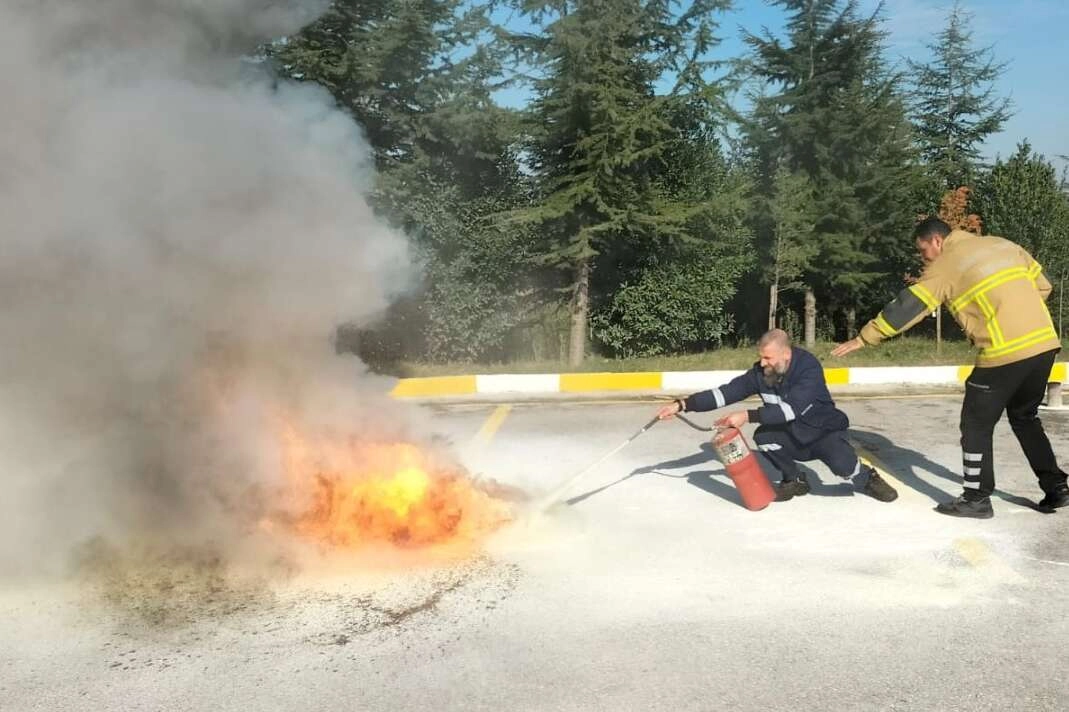 Teorik ve pratik olmak üzere iki bölümden oluşan eğitimlerde, yanma ve yangın, yangın yerindeki riskler, söndürme maddeleri ve söndürme teknikleri, taşınabilir yangın söndürücüler, yangına müdahale ekipmanı, su ve köpük uygulama metotları başta olmak üzere birçok konuda bilgiler sunuldu.