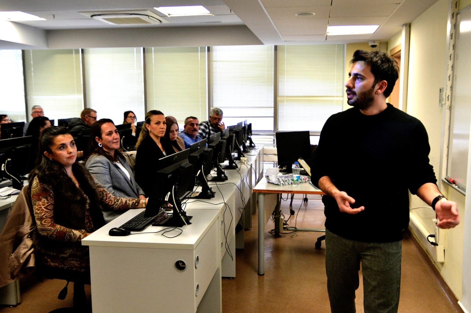 İZMİR (İGFA) - Yaşar Üniversitesi Dr. Öğretim Üyesi Mert Seven tarafından verilen Temel Bilgisayar ve İnternet Kullanımı eğitimi, üniversitenin bilgisayar dersliğinde uygulamalı olarak gerçekleştirildi. Muhtarlar, dijital araçların kamu hizmetlerinde daha etkin kullanımı konusunda bilgi edindi.