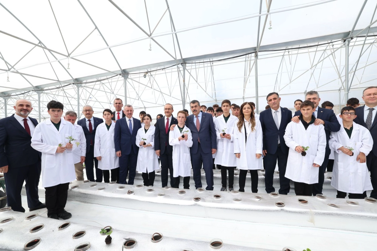Milli Eğitim Bakanı Tekin ve Başkan Büyükakın, Derince ilçesinde yürütülen proje doğrultusunda, “Yeni Nesil Organamineral Topraksız Tarım Ar-Ge Serası” alanında öğrencilerle birlikte çilek fidesi dikti