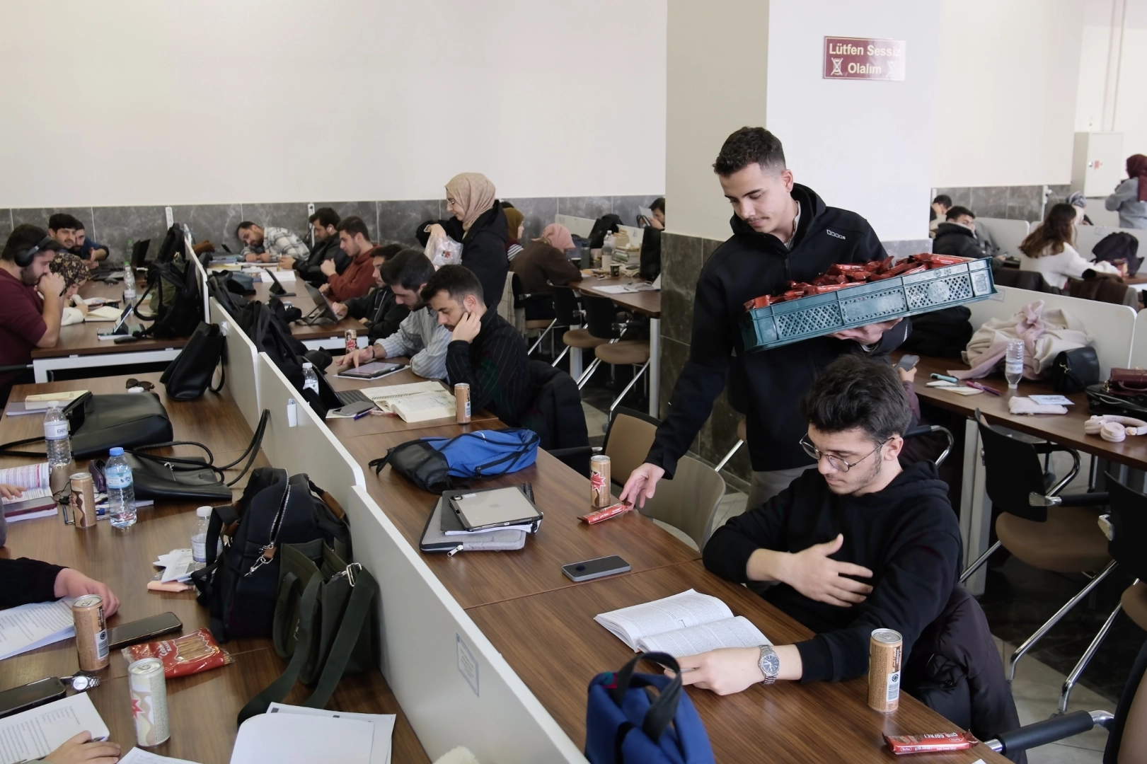 Büyükşehir Gençlik Meclisi, üniversite öğrencilerinin yoğun geçen final dönemi sürecinde motivasyonlarını artırmak amacıyla Konya’daki üniversitelerde ikramlarda bulundu.