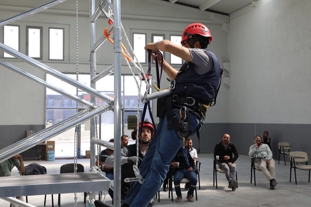 Temizlik, budama ve teknik ekiplerde görev yapan personele yönelik düzenlenen Yüksekte Çalışma Eğitimi, Eğitmen Gökhan Oğuztürk tarafından verildi. Eğitimde, yüksekte çalışırken iş sağlığı ve güvenliği mevzuatına uygun olarak güvenli bir çalışma ortamının nasıl sağlanacağı detaylı şekilde anlatıldı. Ayrıca; doğru ekipman kullanımı, risk değerlendirmesi ve olası tehlikelere karşı alınması gereken önlemler uygulamalı olarak gösterildi.