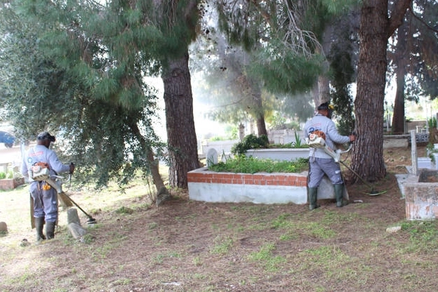 ANTALYA (İGFA) - Antalya Büyükşehir Belediyesi Mezarlıklar Şube Müdürlüğü ekipleri, Antalya’nın doğu ve batı ilçelerindeki mezarlık alanlarında temizlik çalışmalarını sürdürüyor. Büyükşehir ekipleri ilçelerdeki mezarlık alanlarında hummalı bir çalışma gerçekleştirirken, mezarlar aralarındaki yollarda bozulan bordür taşlarını yeniliyor. Ekipler, mezar duvarlarında düzenleneme yaparak, yıkılan duvarlar onarılıyor boyanıyor. Mezarlık alanlarındaki büyüyen ot ve bitkiler kesilirken, bir yandan da ilaçlama yapılıyor. Vatandaşların rahat bir şekilde kabir ziyareti yapabilmesi amacıyla ekipler, titiz bir çalışma yürütüyor.
