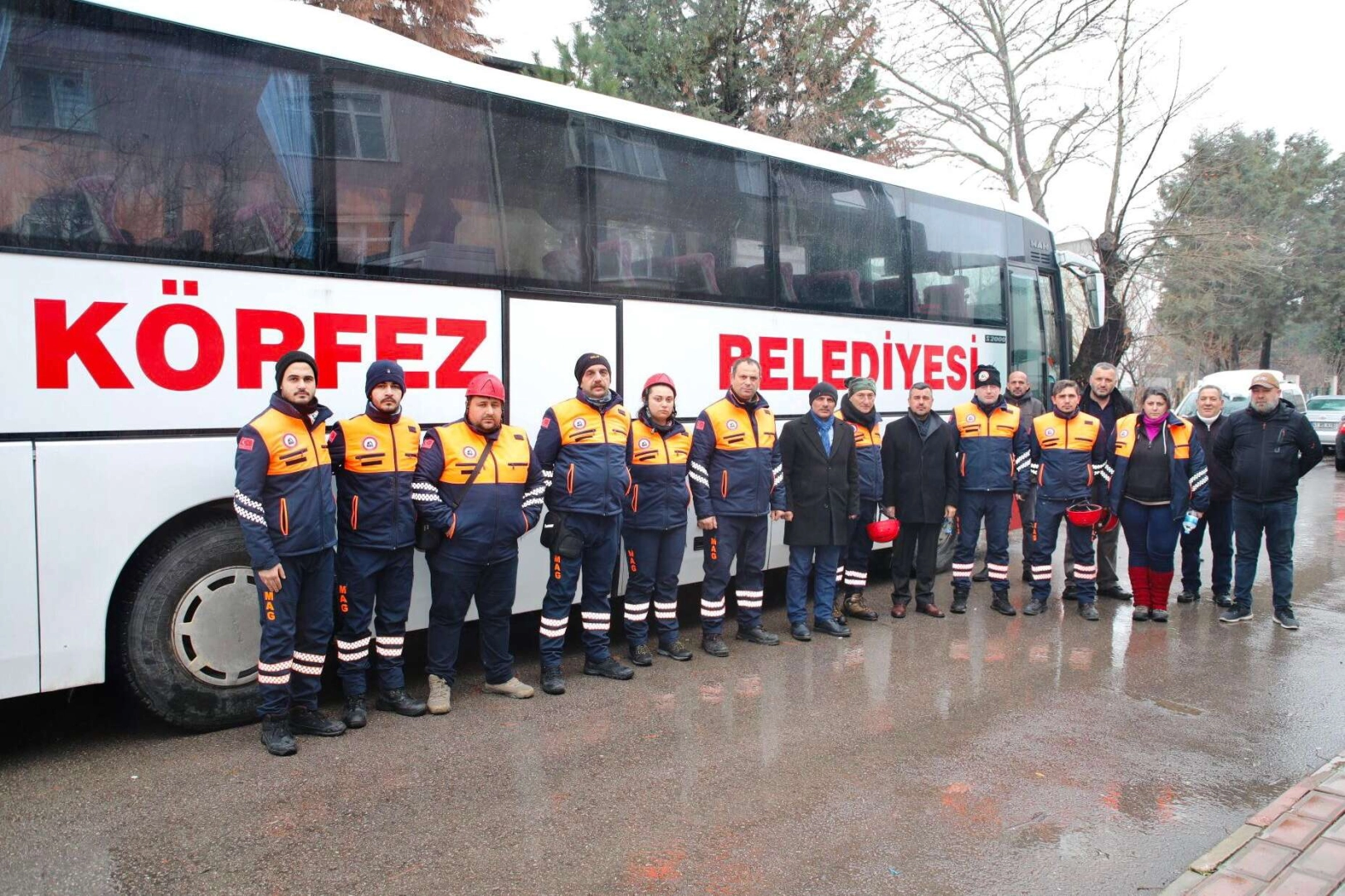 Deprem bölgesindeki arama kurtarma çalışmalarına destek verecek olan Mahalle Afet Gönüllüleri Derneği üyelerini uğurlayan Körfez Belediye Başkanı Şener Söğüt, “Birlikte tüm yaraları saracağız” dedi