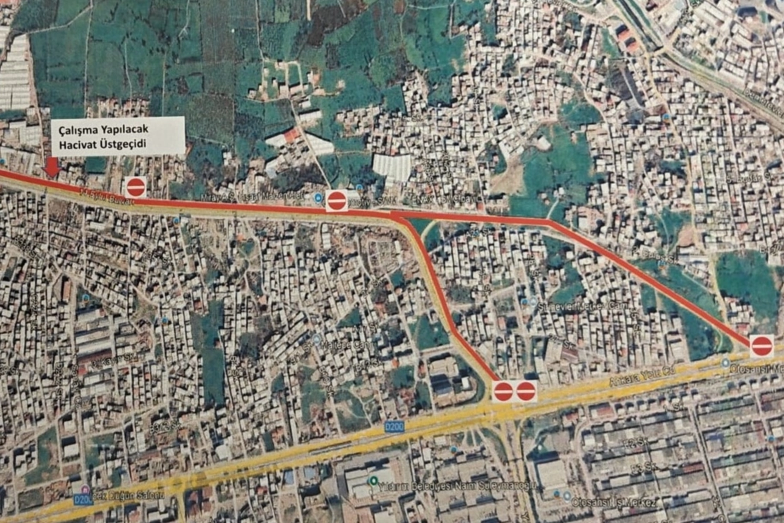Bursa Büyükşehir Belediyesi, Yıldırım ilçesi 11 Eylül Bulvarı üzerindeki Hacivat Üst Geçidi’nde bakım ve onarım çalışmaları nedeniyle 29 Haziran 2025 Pazar günü saat 13.00'e kadar yolun araç trafiğine kapatılacağını duyurdu.