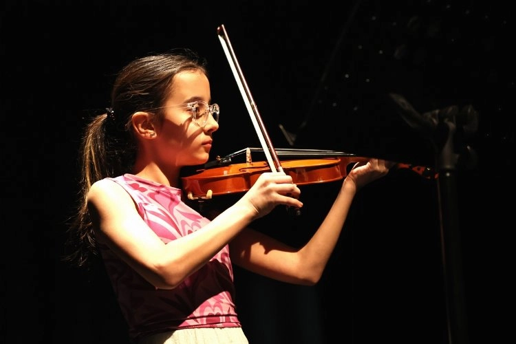 Keman ve piyano sınıfında yer alan farklı yaş gruplarından 50 öğrenci Uğur Mumcu Sahnesi’nde konser verdi. İzleyenlerden tam not alan öğrencilerin aileleri de onların heyecanına ortak oldu.