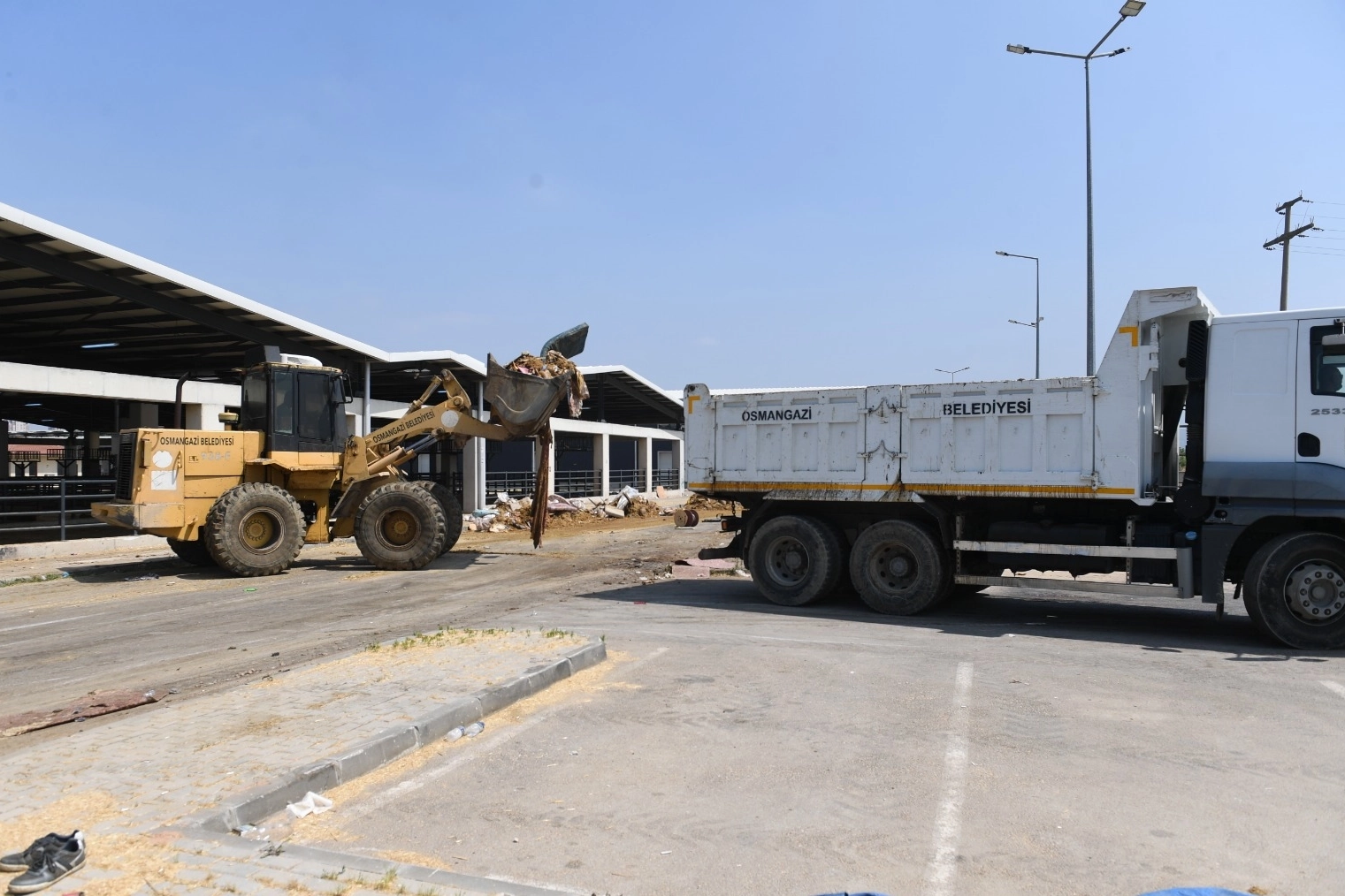 Bursa'da Osmangazi Belediyesi, Kurban Bayramı dolayısıyla ilçede kurulan kurban satış yerlerini iş makineleri ile temizleyerek günlük hayata uygun hale getirdi.