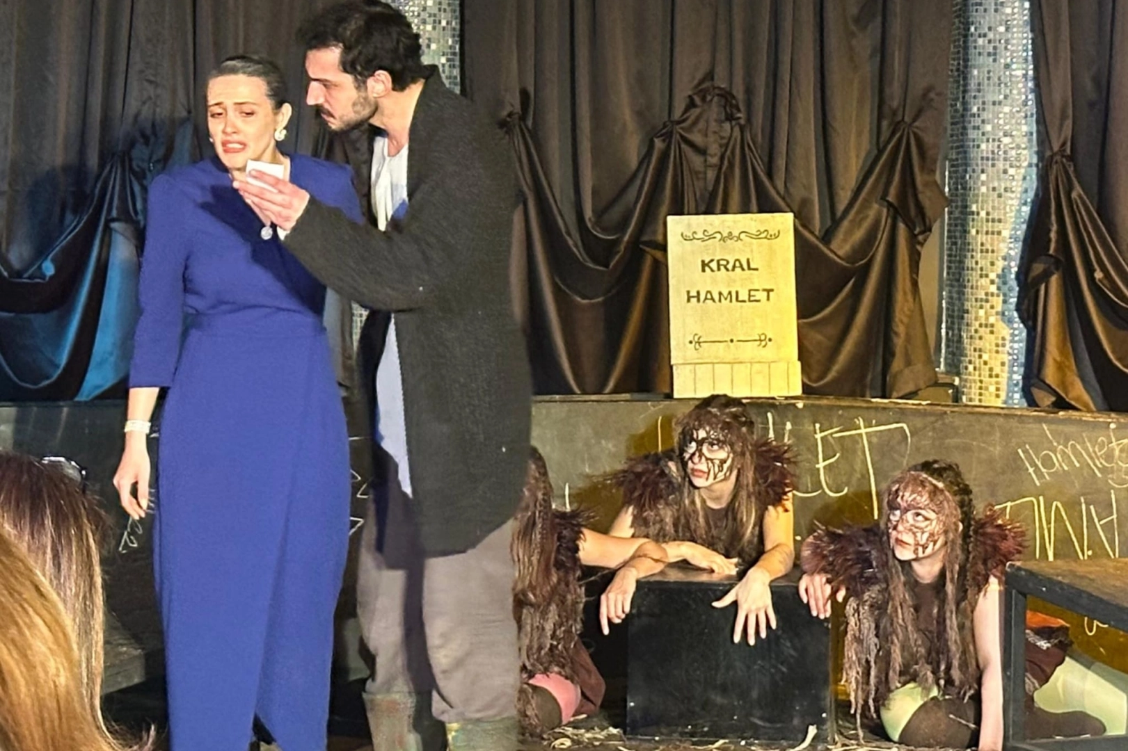 Sahne tasarımcısı ve yönetmen Metin Deniz’in kaleme aldığı 2026 yılı “27 Mart Dünya Tiyatro Günü Ulusal Bildirisi”nin okunmasının ardından yönetmenliğini Bursa Devlet Tiyatrosu oyuncusu Sözl. Öğr. Gör. Ali Bircan Teke’nin yaptığı ve Sahne Sanatları Bölümü Lisans 4 öğrencilerinin rol aldıkları William Shakespeare'in "Hamlet" adlı oyunu sahnelendi.