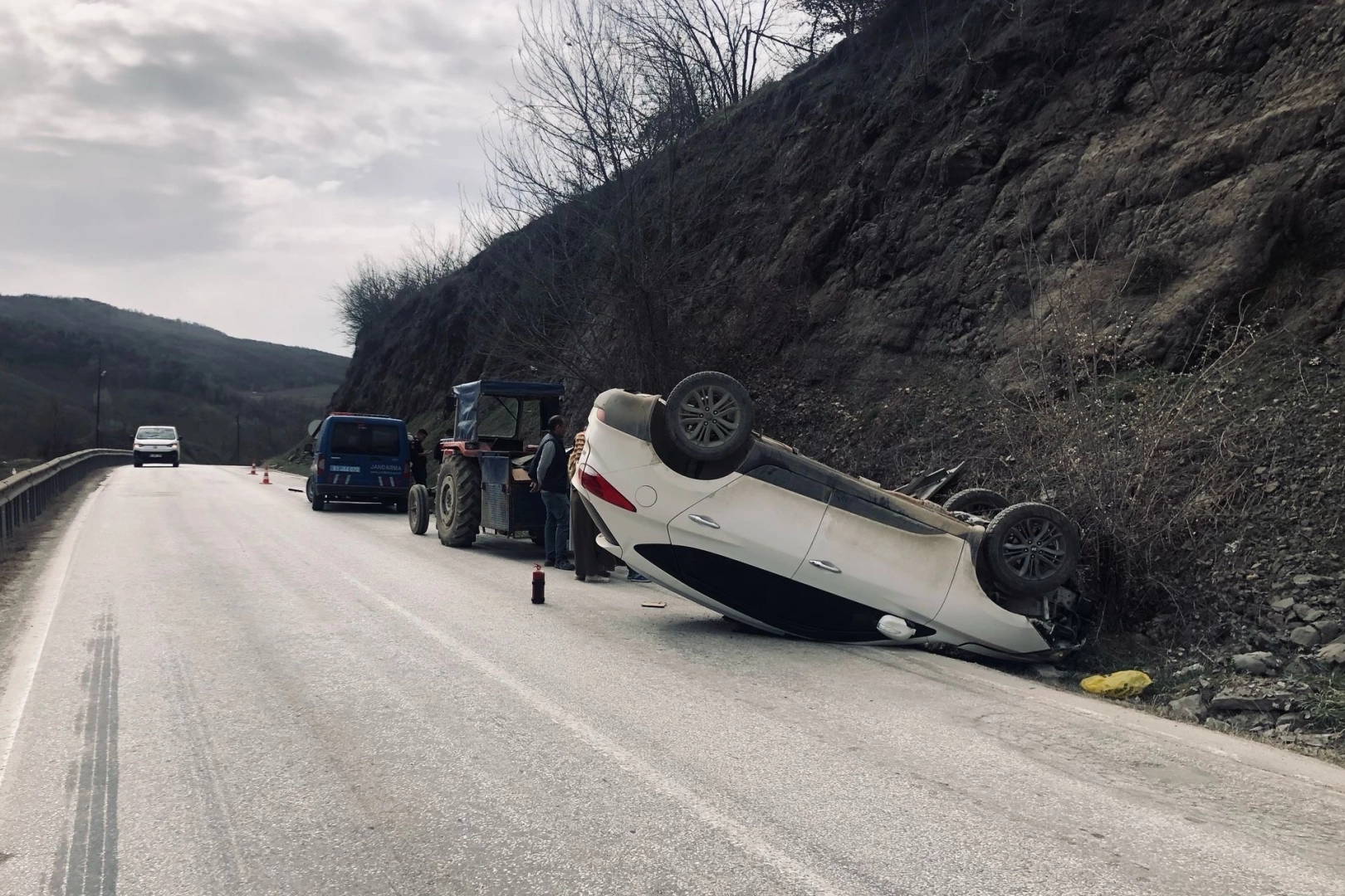 Sefer DEMİR / DÜZCE (İGFA) - Düzce'nin Yığılca ilçesi Aksu mevkisinde seyir halinde olan Murat Ö. idaresindeki 81 ACF 584 plakalı otomobil, sürücüsünün direksiyon hakimiyetini kaybetmesi sonucu devrildi.