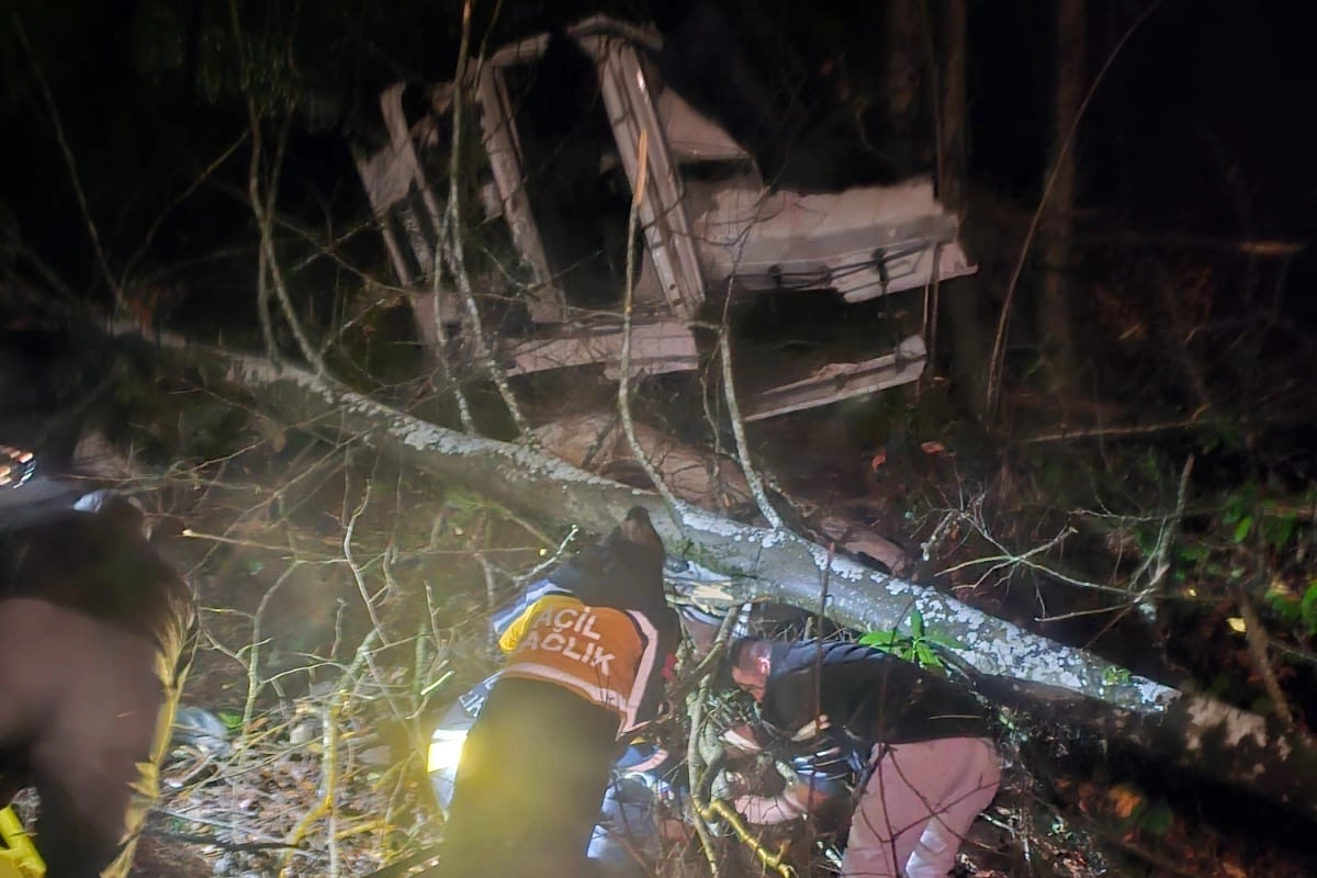 Düzce’de tomruk yüklü tır uçuruma yuvarlandı