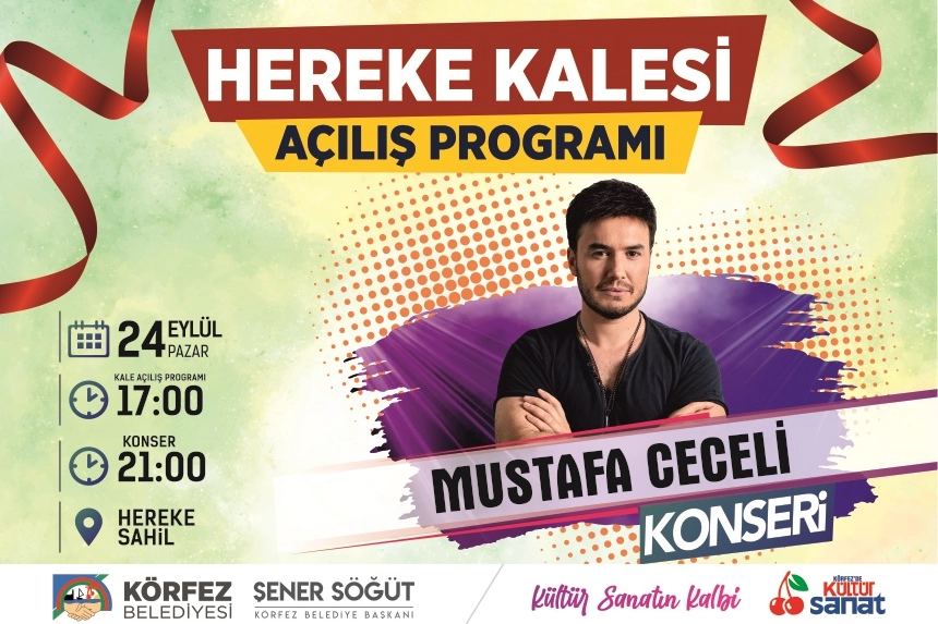 Hereke Kalesi’nin açılışının hemen sonrasında ise pop müziğin sevilen ismi Mustafa Ceceli Körfezlilere konser verecek. Konser; Hereke Sahil Parkı’nda saat 20.00 itibariyle başlayacak.