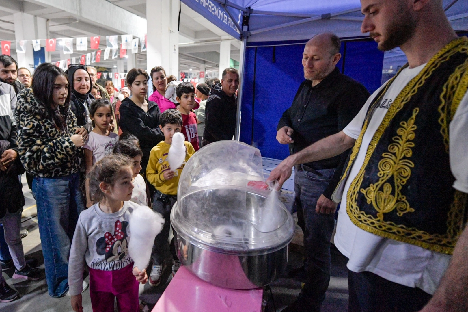Miniklere de pamuk şeker ikram edilirken, İzmir Büyükşehir Belediyesi’nin iftar sofrası bu akşam (16 Mart Pazar) Karşıyaka’da Fikri Altay Spor Kulübü Tesisleri yanı (6184/3 Sokak) ve Gaziemir’de Atıfbey Mahallesi Kapalı Pazaryeri' nde kurulacağı duyuruldu.