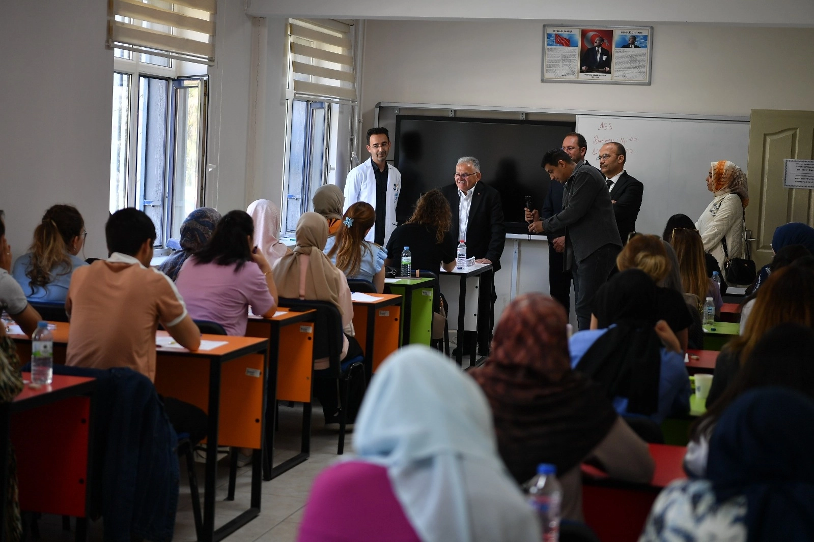 Kayseri Büyükşehir Belediye Başkanı Dr. Memduh Büyükkılıç, KAYMEK Sümer Tesisi’ni ziyaret ederek Akademi Giriş Sınavı (AGS) kursu öğrencileri ile bir araya geldi. Genç öğretmenlerle sıcak ve samimi sohbetler gerçekleştiren Başkan Büyükkılıç, sınava hazırlanan kursiyerlere AGS’de başarılar diledi.