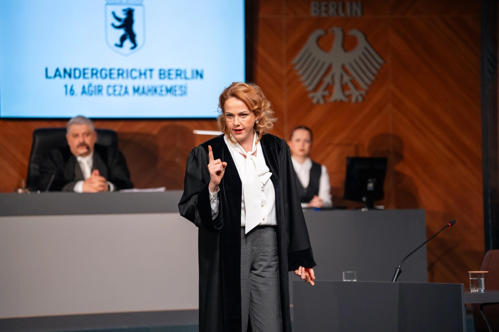 “Karar”, olağanüstü bir tehdit karşısında alınan kritik bir kararın sonuçlarını ele alırken; insan onuru, anayasal değerler ve devletin sorumlulukları gibi kavramları tartışmaya açıyor. Sahnedeki mahkeme atmosferiyle seyirciyi bir jüri üyesine dönüştüren oyun, “çoğunluğun iyiliği için nelerden vazgeçilebilir?” sorusunu güçlü bir şekilde gündeme taşıyor. Güçlü kadrosuyla dikkat çeken oyunda Aydın Sigalı, Basri Kaan Özcan, Çiğdem Sarıhan Benli, Feyzanur Ayan, Melis Erdal, Nursel Çeliktürk, Seçil Mutlu Oğuz, Tunç Efe, Utku Oğuz ve Zafer Kırdudu yer alıyor.