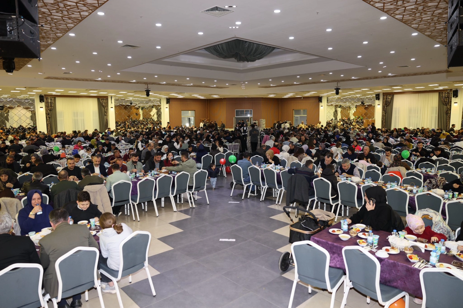 sonrasında oruçlar açılırken, Başkan Söğüt de masaları gezerek personelle ve