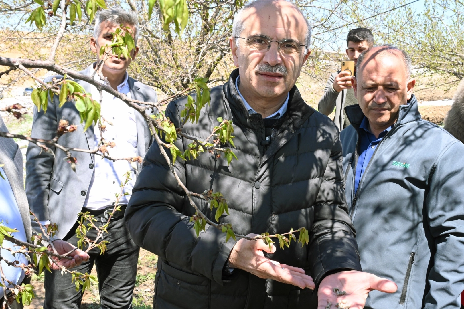Malatya'da kar yağışı ve don nedeniyle zarar gören meyve bahçelerini incelemek için Büyükşehir Belediye Başkanı Sami Er, Ticaret Borsası Başkanı Ramazan Özcan ve TARSİM Bölge Müdürü Bülent Zelyurt ile birlikte saha ziyaretinde bulundu.