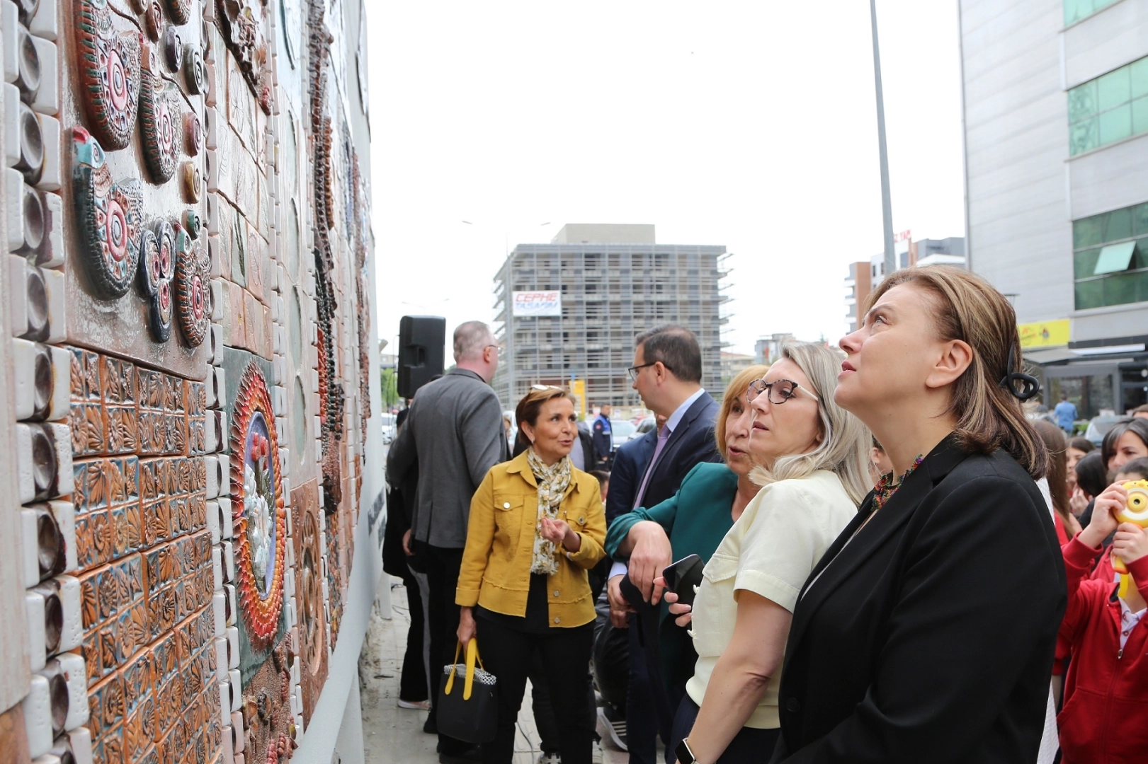 Açılışa Nilüfer Belediye Başkan Yardımcıları Okan Şahin, Şirin Arıbaş, Bukle Erman ve panonun oluşturulmasına katkı koyan öğretmenler ve öğrenciler katıldı. Okan Şahin, son seramik parçayı da koyarak panoyu tamamladı.