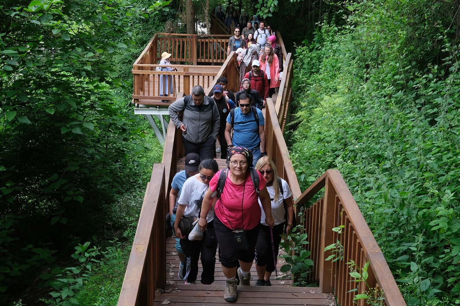 Uzman rehberler eşliğinde gerçekleştirilen programda, hafif egzersiz programları, yürüyüş yapan katılımcılar 4 kilometrelik zorlu parkuru tamamladığında fotoğraf çekerek günü ölümsüzleştirdi.