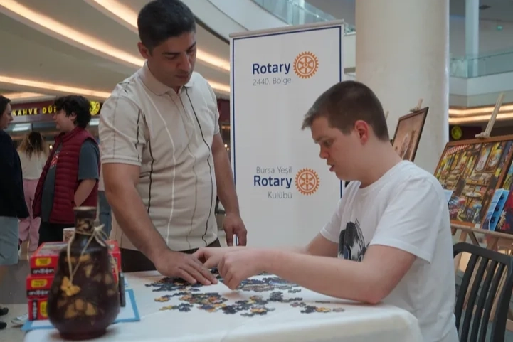Herkes Duysun / BURSA (İGFA) - Bursa Yeşil Rotary Kulübü öncülüğünde, BTSO Baha Cemal Zağra Özel Eğitim Uygulama Okulu’nun özel öğrencisi tarafından hazırlanan "Odaklanma ve Dikkatin Dünyası” adlı sergi, KoruPark AVM'de sanatseverlerle buluştu.