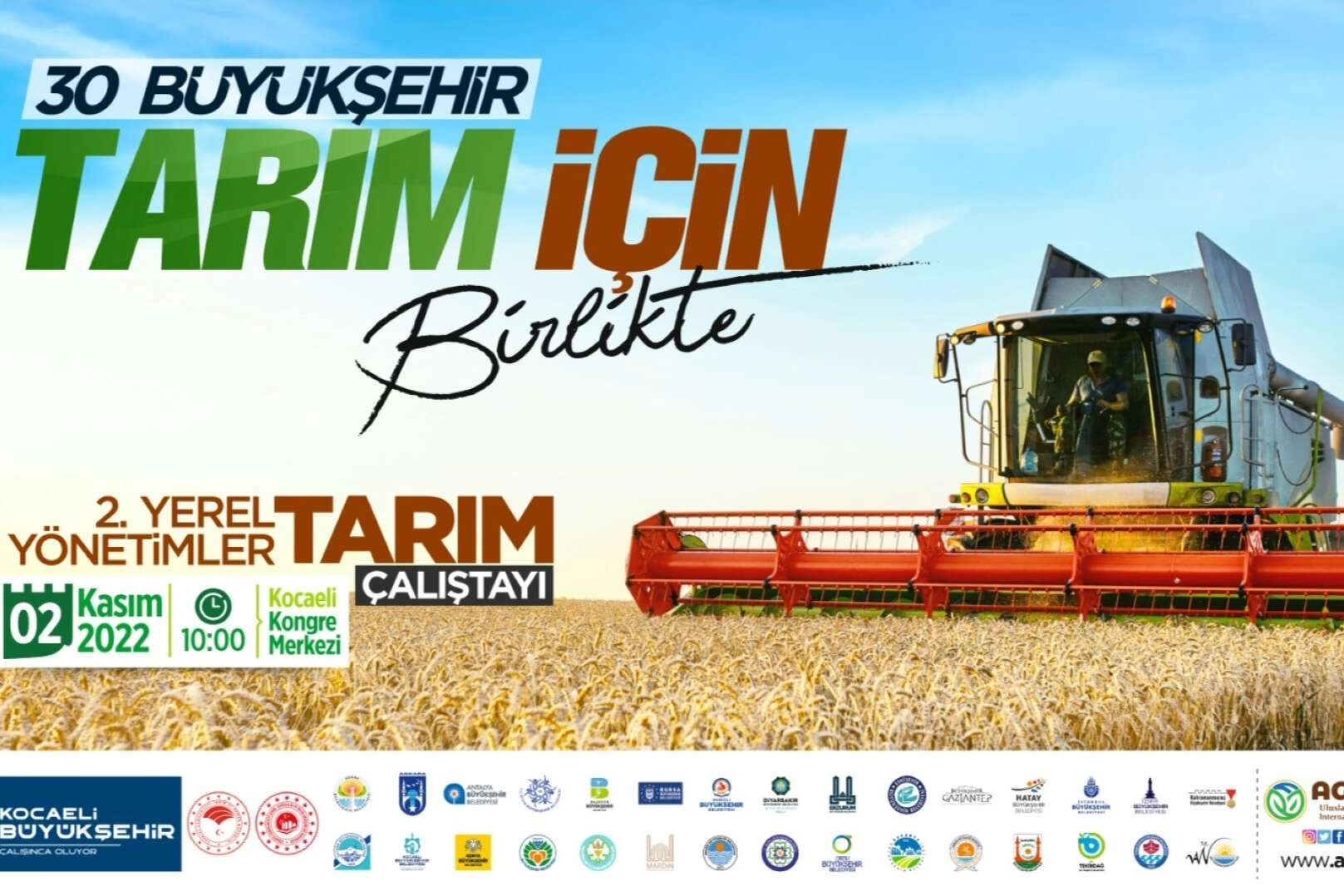 Tarıma yönelik çiftçilerin yüzünü güldüren projelerle Türkiye’ye örnek olan Kocaeli Büyükşehir Belediyesi’nin ev sahipliğinde, 30 Büyükşehir Belediyesi, belediyelerin Tarımsal ve Kırsal Hizmetler Dairesi yöneticileri, yerel yönetim temsilcileri, özel sektör yatırımcıları, çiftçiler ve akademisyenlerin katılımıyla “30 Büyükşehir, tarım için birlikte” sloganıyla, “Yerel Yönetimler ve Tarım Çalıştayı, 2-4 Kasım tarihinde Kocaeli Kongre Merkezinde düzenlenecek.