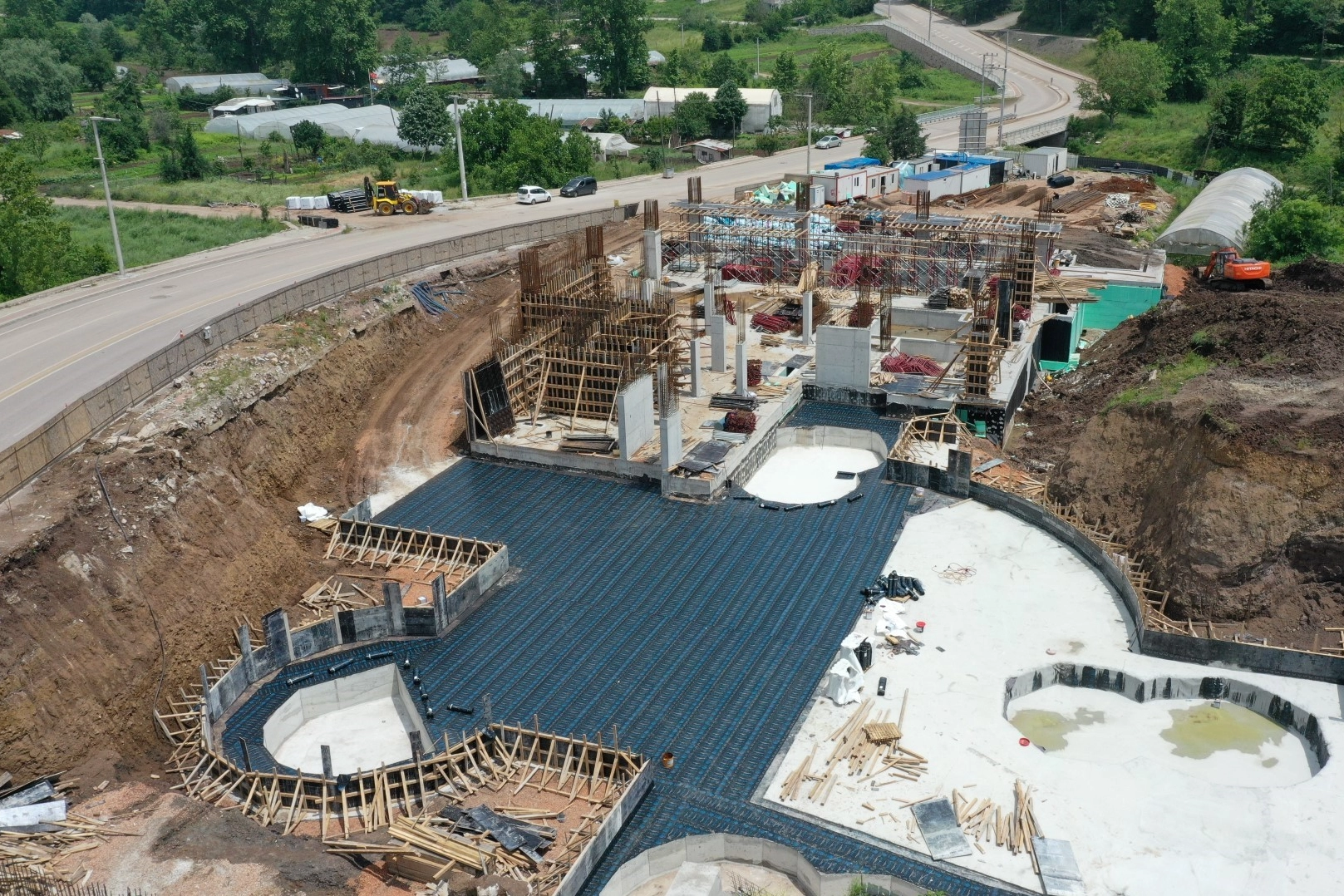 Projenin A bloğunun yapılacağı alanda hafriyat çalışmalarına devam ediliyor. B blokta ise grobeton dökümü tamamlandı. Ekipler yalıtım imalatlarına devam ediyor. Termal suyun tutulacağı deponun temel betonu döküldü, perde kalıbına devam ediliyor. C blokta -8.15 kotu ile -4.00 kotu arası kolon ve perdelerde demir donatı ve kalıp montajına devam ediyor. 3. Bodrum katta ise kaide betonları döküldü. Ayrıca kaba sıva imalatlarına devam ediliyor.
