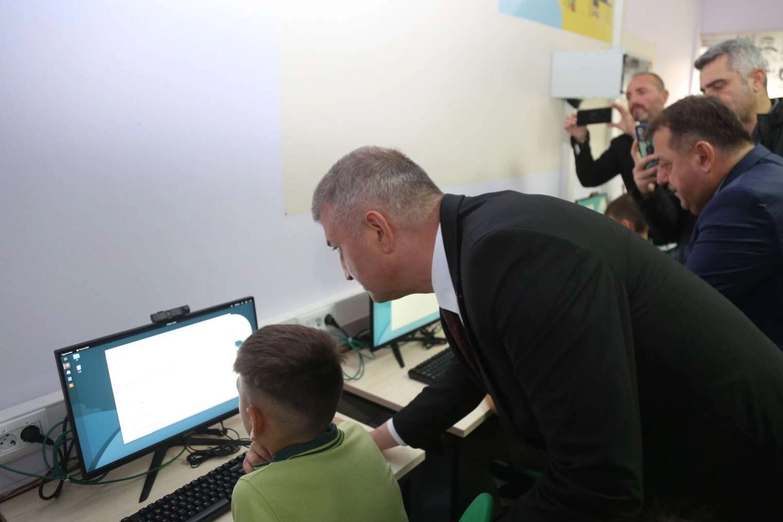 Gölcük Belediye Başkanı Ali Yıldırım Sezer, Rotterdam İlkokulu bilgisayar sınıfı açılışında öğrencilerle yakından ilgilendi.