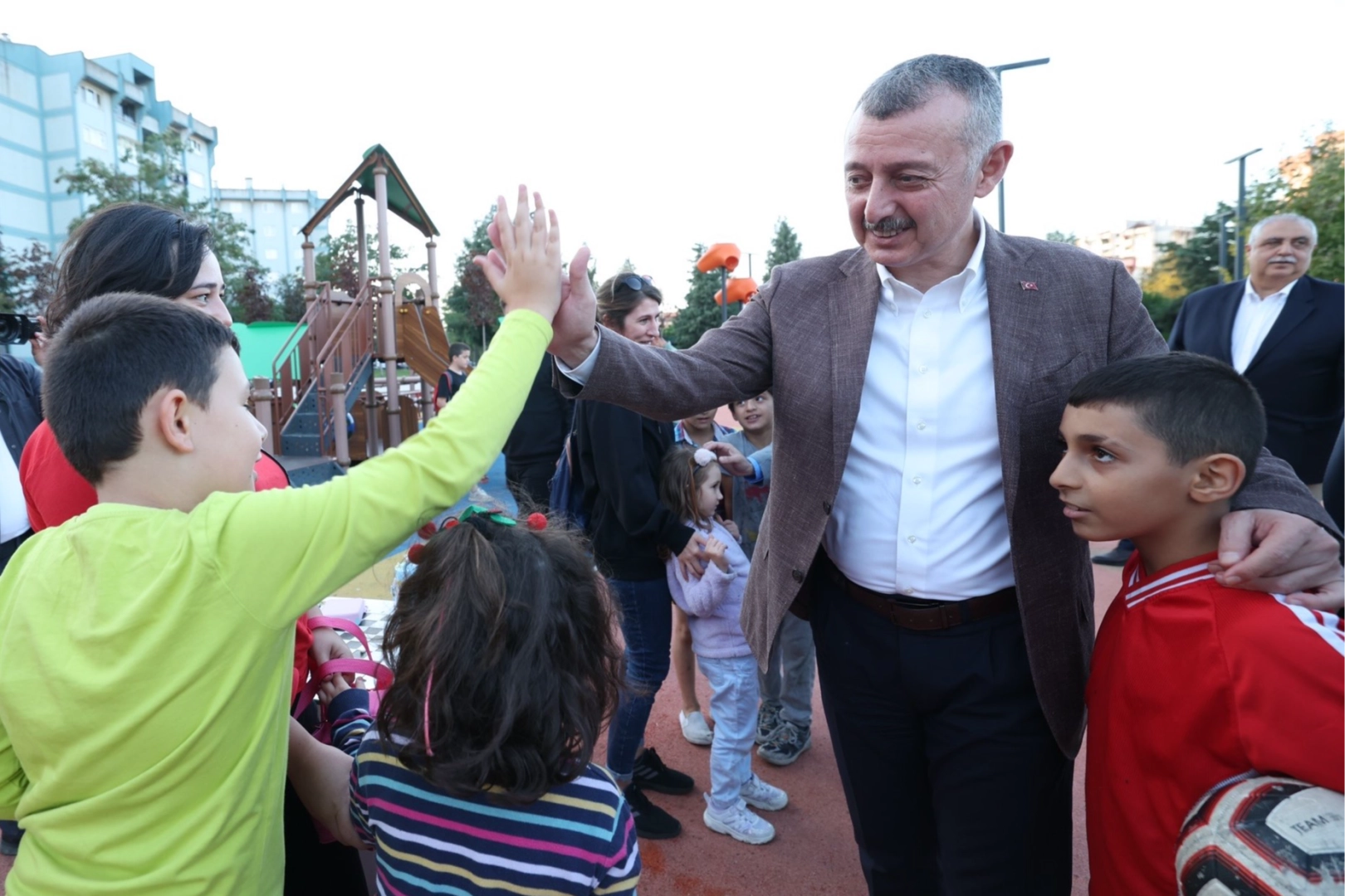 Başkan Büyükakın, Büyükşehir’in Çayırova’da yapımını tamamladığı Cumhuriyet Mahallesi Parkı’nda çocuklarla bir araya gelip top oynadı