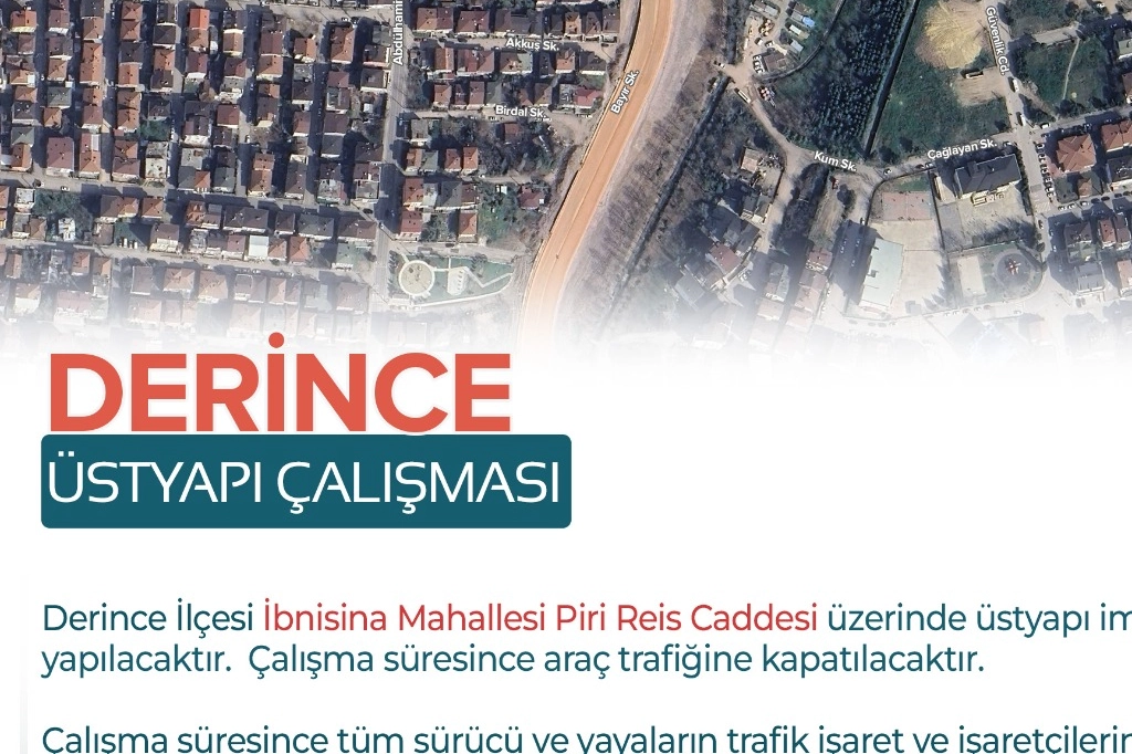 Derince ilçesi İbnisina Mahallesi Piri Reis Caddesi üzerinde üstyapı imalat çalışması yapılacak
