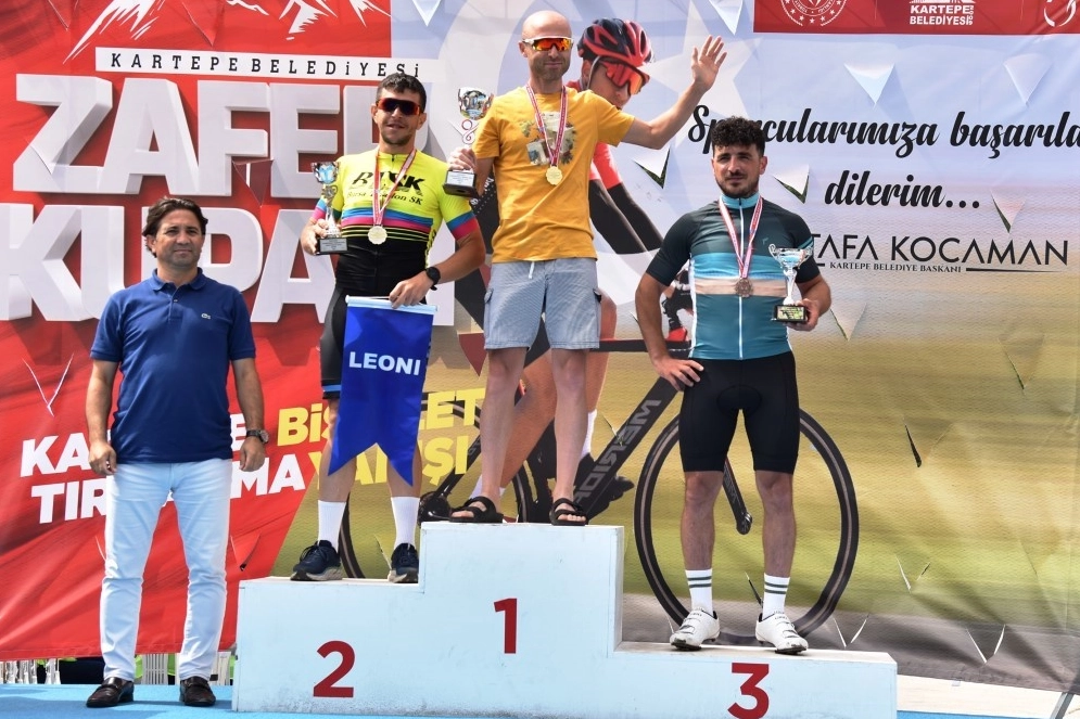 FİLİZ – Kartepe Belediyesi Başkan Yardımcısı Mehmet Filiz, Zafer Kupası 2.Kartepe Bisiklet Tırmanma Yarışı “Büyük Erkek” kategorisinde birinci Ozan Yavuz, ikinci Satu Ahmedov ve üçüncü olan Cihat Mert’e kupalarını verdi.