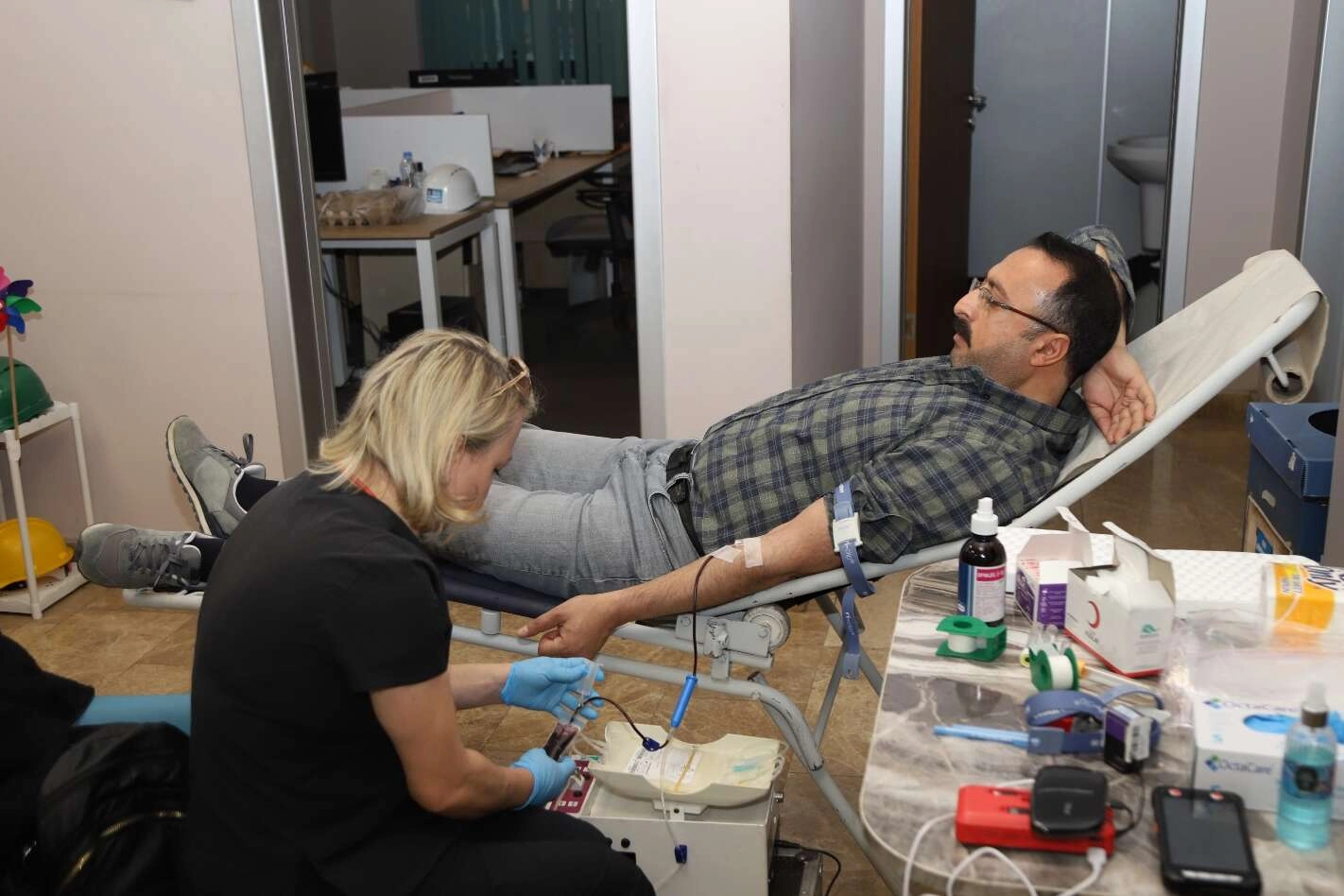 Kızılay, Türkiye’de ihtiyaç sahibi ve sağlık kuruluşlarının kan ihtiyacını karşılıyor. Ülkemizi yasa boğan Kahramanmaraş depremi sonrası yaşanan kan talebi ile birlikte Kızılay stoklarında gerileme yaşandı. Türkiye genelinde gönüllülük esasına göre hizmet veren Kızılay’a birçok vatandaşımız deprem sonrası duyarsız kalmayarak kan bağışında bulunuyor. İSU Genel Müdürlüğü’de kan bağışı kampanyalarına duyarsız kalmayarak 3 aylık periyotlar halinde kan bağışı kampanyasına destek oluyor. Kurum yönetici ve personeli de kan bağış kampanyası kapsamında Kızılay’a destek vermek için gün boyunca kan bağışı gerçekleştirdi. İzmit Kan Bağış Merkezinin uzman personeli tarafından gerçekleştirilen ön kan testleri ve tansiyon ölçümlerinin ardından kan bağışları yapıldı. Yönetici ve personeller kan bağışı ile ihtiyaç sahiplerine yönelik katkılarından dolayı çok mutlu olduklarını ifade ettiler.
