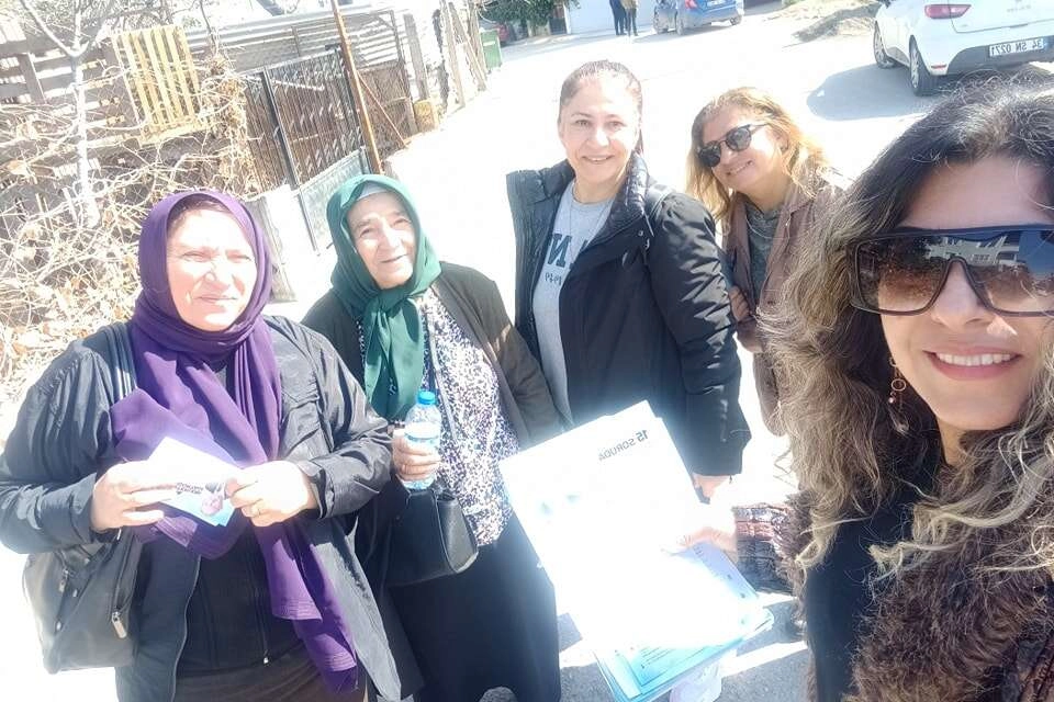 Cumhuriyet Halk Partisi Körfez İlçe Kadın Kolları ve yönetimi; mahalle mahalle, cadde cadde gezerek partisine ait el ilanlarını dağıtıyorlar;.