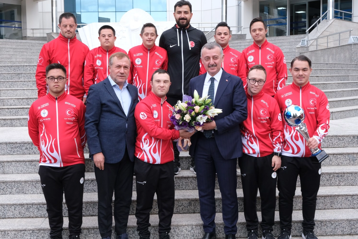 Kocaeli Büyükşehir Belediyesi hizmet binası önünde düzenlenen teslim törenine Kocaeli Büyükşehir Belediye Başkanı Tahir Büyükakın’ın yanı sıra Büyükşehir Genel Sekreter Balamir Gündoğdu ve genel sekreter yardımcıları, Türkiye Özel Sporcular Spor Federasyonu Başkanı Birol Aydın, Down Sendromlu Futsal Milli Takımı Teknik Direktör Yardımcısı Hüseyin Dağdelen ile sporcular katıldı.