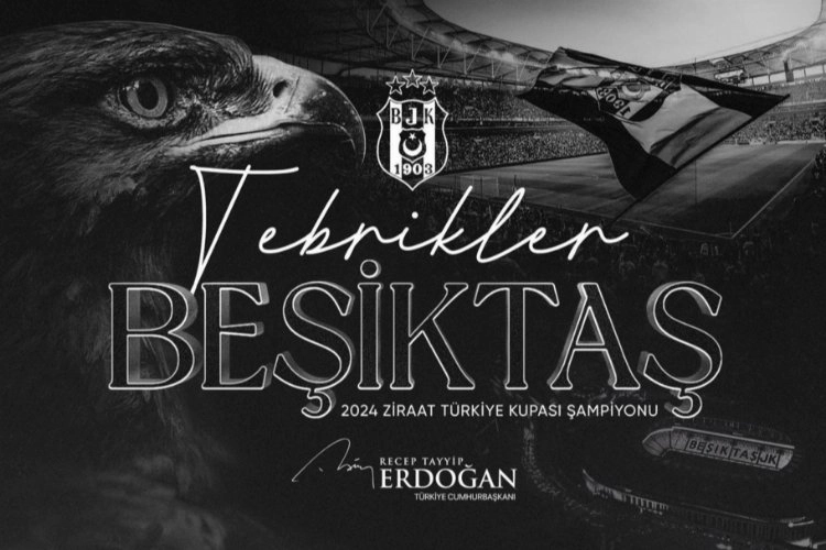 Cumhurbaşkanı Erdoğan, paylaşımda, "2024 Ziraat Türkiye Kupası Şampiyonu Beşiktaş'ı, tüm Beşiktaş camiasını ve taraftarını canıgönülden tebrik ediyorum." ifadesini kullandı.
