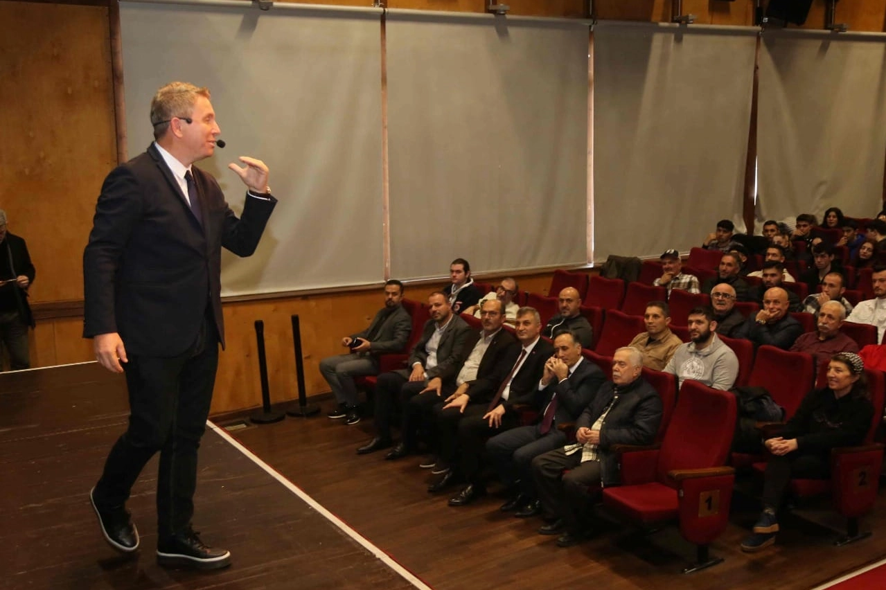 Gölcük Belediyesi tarafından Kervansaray’da düzenlenen etkinlikte TRT Spor Spikeri Erdoğan Arıkan, gençlere tecrübelerini anlattı.