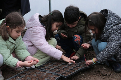 Anaokulu öğrencilerinden Gökçe Onur ise sebze tohumlarını toprakla buluşturduklarını ifade ederek, "Bu tohumları dikeceğiz, sulayacağız ve büyüteceğiz. Sebzeleri sağlıklı bir şeklide yiyeceğiz." dedi.