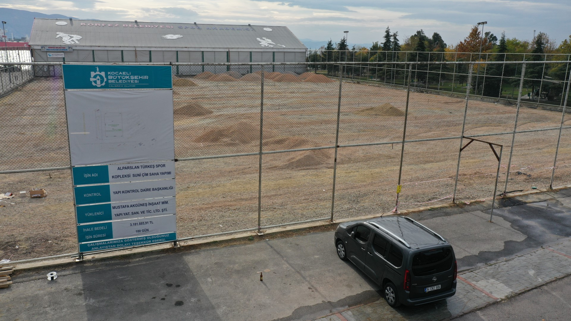 Körfez Alparslan Türkeş Spor Kompleksi içerisinde bulunan 5 bin 930 m²'lik alandaki çim, Büyükşehir ekipleri tarafından çalışmaların ilk kısmında kaldırılmıştı. Sahanın yeni sentetik çim halısının üretimi fabrika ortamında gerçekleştiriliyor.