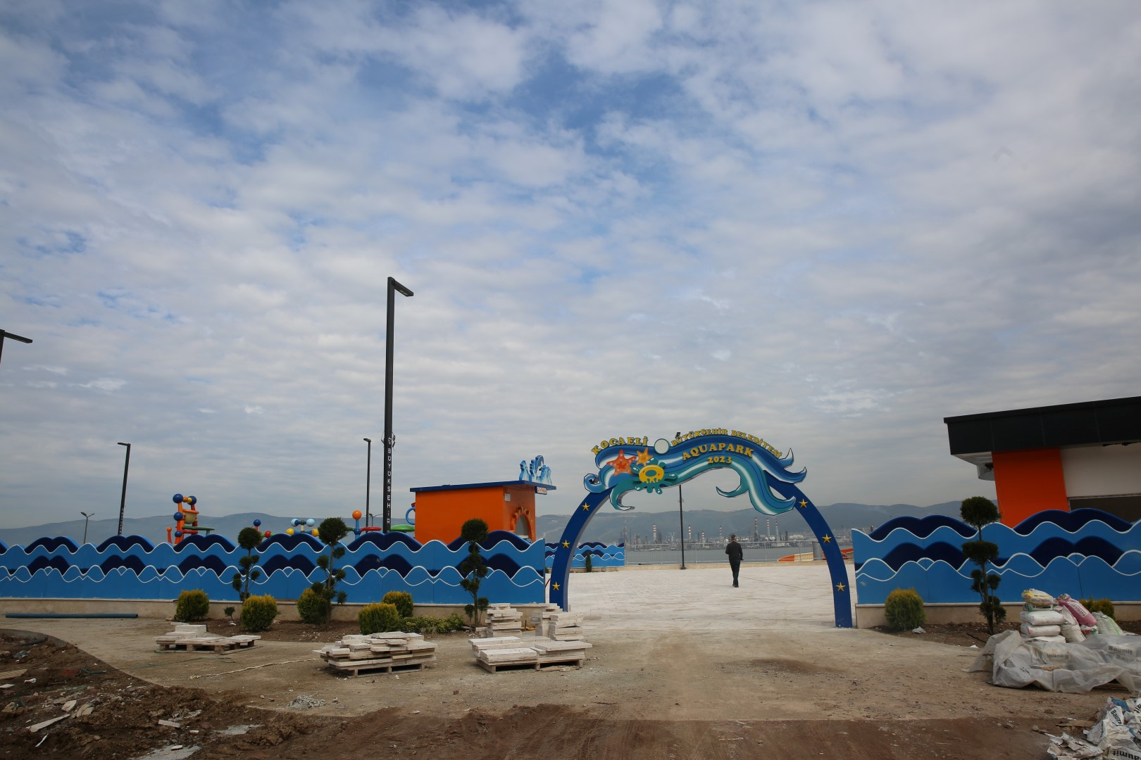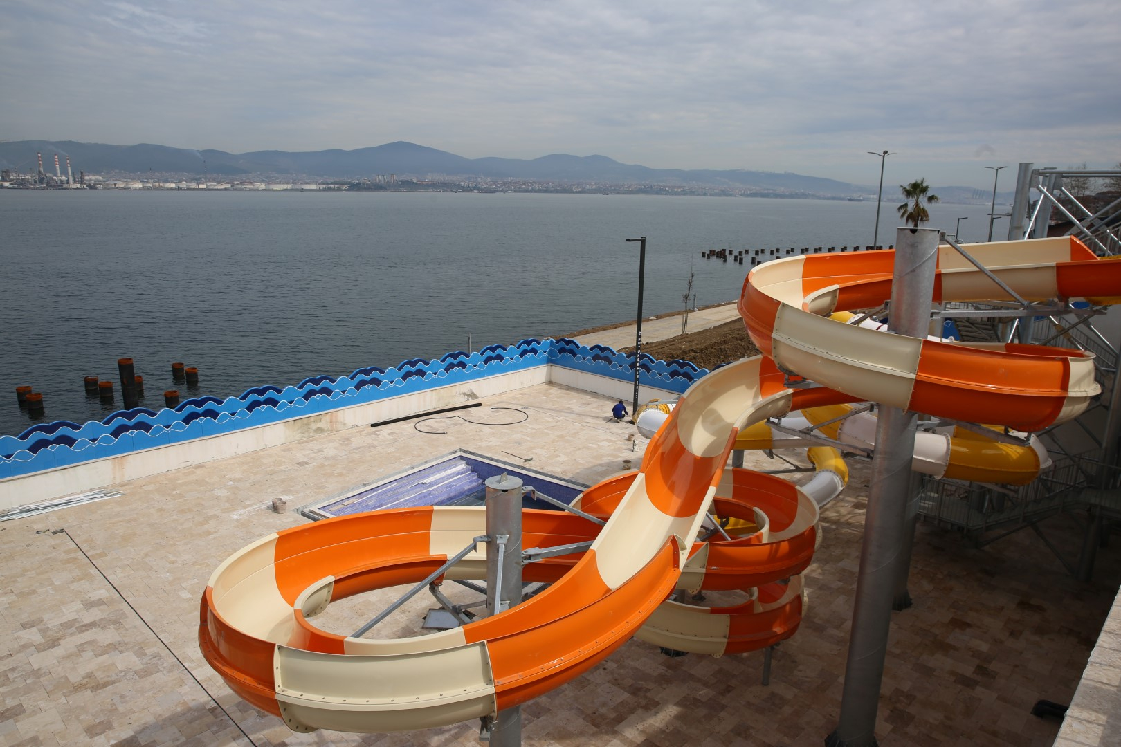 Gölcük Değirmendere-Halıdere arası sahil alanında Büyükşehir Belediyesi’nin çalışmaları sürüyor. 37 bin metrekare proje alanında bin 450 metretül sahil yürüyüş yolu-bisiklet yolu yapıldı. Proje içerisinde yer alan aquapark büyük oranda tamamlandı. İki adet spiral kaydıraklı aquapark ve düşme havuzu imalatı ile sprey action su oyun parkı montajları tamamlandı. Aquapark alanında hizmet verecek olan 185 metrekare alana sahip idari bina, lavabo ve soyunma odalarının bulunduğu yapı tamamlanma aşamasına getirildi.