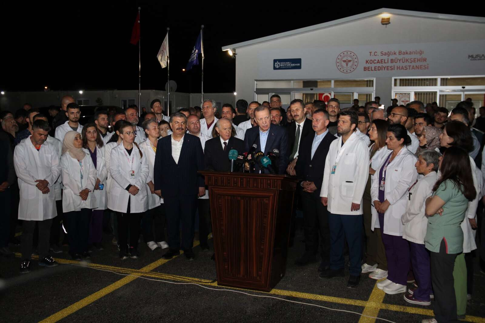 Cumhurbaşkanı Recep Tayyip Erdoğan, Kocaeli Büyükşehir Belediyesi tarafından Hatay Defne’de 20 günde tamamlanan Kocaeli Büyükşehir Belediyesi Hastanesi’ni ziyaret etti. Cumhurbaşkanı Erdoğan’a MHP Genel Başkanı Devlet Bahçeli, Sağlık Bakanı Fahrettin Koca, İçişleri Bakanı Süleyman Soylu ve Kocaeli Büyükşehir Belediye Başkanı Tahir Büyükakın eşlik etti. Başkan Büyükakın, hastanenin yapım süreci ve işleyişi hakkında Cumhurbaşkanı Erdoğan’a ve beraberindeki heyete detaylı bilgi verdi. Hastanede sağlık personeli ve hastalarla bir araya gelen Cumhurbaşkanı Erdoğan, Başkan Büyükakın’a takdirlerini iletti.