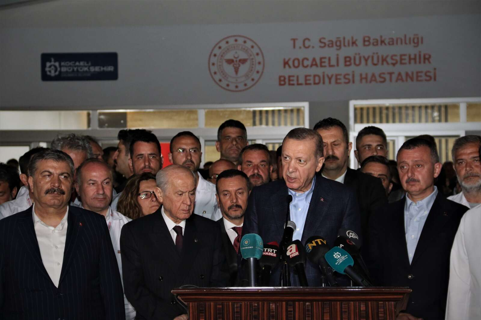 Cumhurbaşkanı Erdoğan, Hatay Defne’de inşa edilen Kocaeli Büyükşehir Belediyesi Hastanesini ziyaret ederek, Başkan Büyükakın’dan bilgi aldı