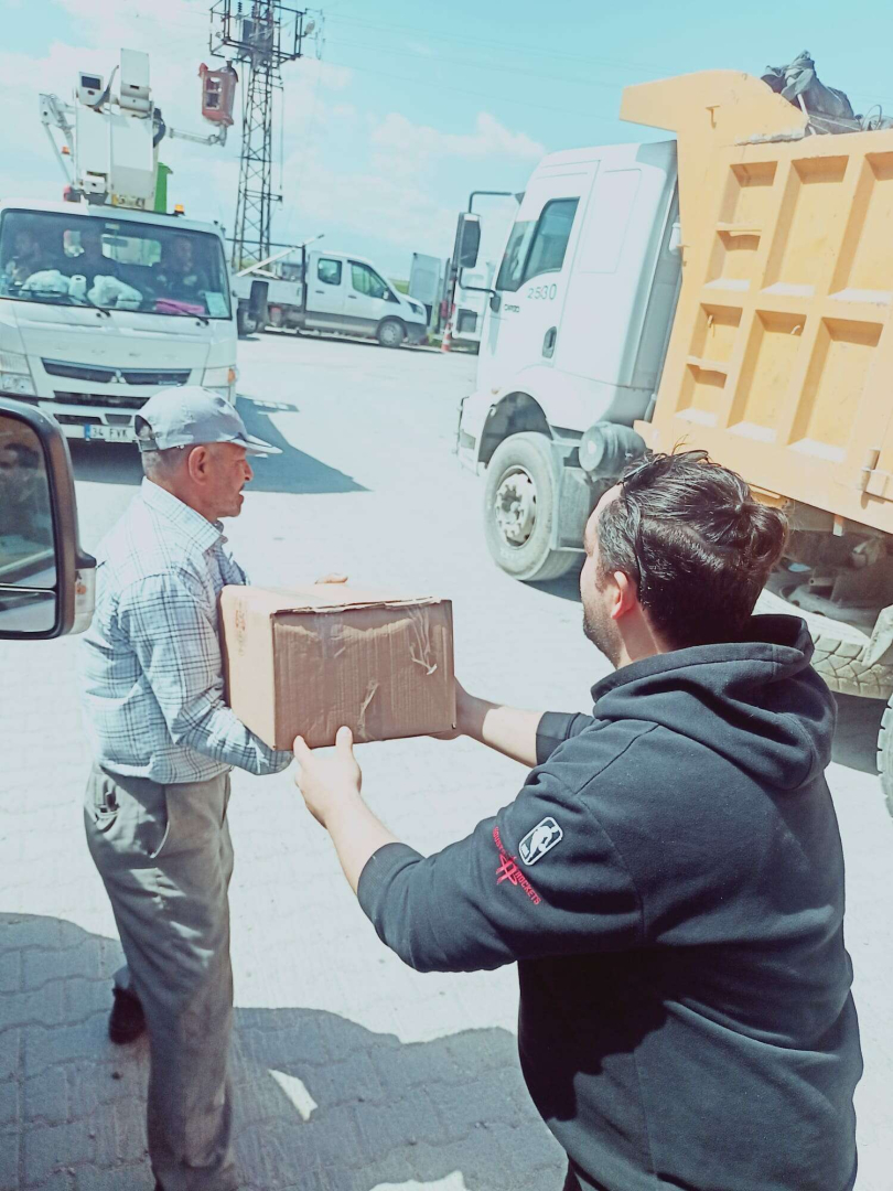 DEPREM BÖLGESİNE GİTTİLER, KOLİLERİ TEK TEK DAĞITTILAR