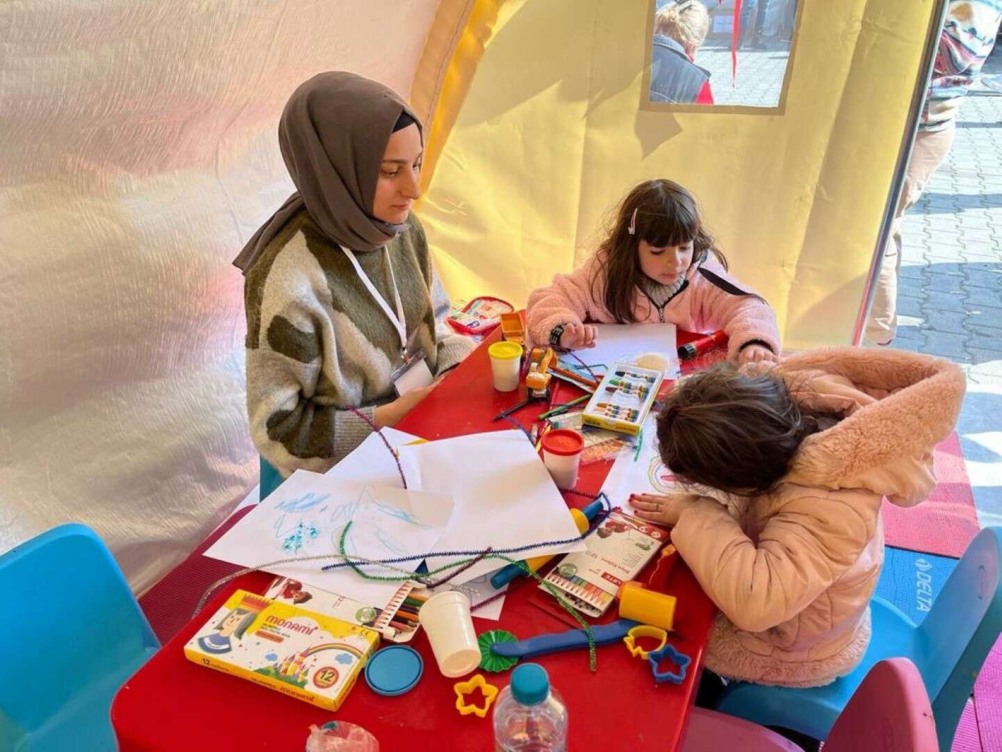 Depremden en çok etkilenenler kuşkusuz çocuklar. Kocaeli Büyükşehir, Hatay Defne’de depremzede çocukları oyunla hayata bağlamaya çalışıyor