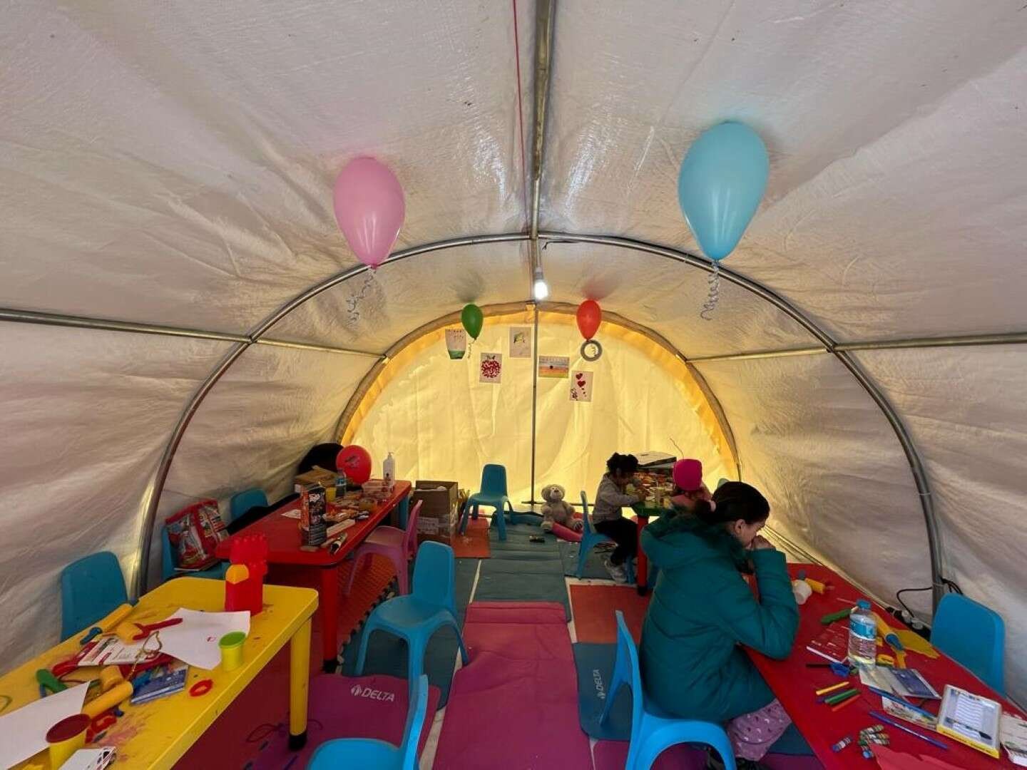 Kocaeli Büyükşehir Belediye Başkanı Tahir Büyükakın, Kahranmaraş’ta yaşanan iki büyük depremin ardından sarsıntılardan en çok etkilenen yerlerden olan Hatay’ın Defne ilçesinde görevlendirilmişti. Başkan Büyükakın ve beraberindeki ekibin ilçeye ayak basmasından bu yana depremin yaralarının sarılması için çok önemli adımlar atıldı. Arama kurtarma, alt yapı, içme suyu, gıda, çadır kent ve sahra hastanesi çalışmaları devam ederken, depremden en çok etkilenen çocukların oyunla iyileştirilmesi için de Defne’de ilk olarak Necmi Asfuroğlu Anadolu Lisesi’nin bahçesinde özel bir çadır hazırlandı.