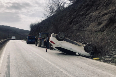 Sefer DEMİR / DÜZCE (İGFA) - Düzce'nin Yığılca ilçesi Aksu mevkisinde seyir halinde olan Murat Ö. idaresindeki 81 ACF 584 plakalı otomobil, sürücüsünün direksiyon hakimiyetini kaybetmesi sonucu devrildi.