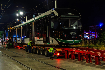 KOCAELİ (İGFA) - Kocaeli şehir içi ulaşımına büyük bir soluk getiren tramvay filosu gücüne güç katıyor. Büyükşehir Belediyesi tarafından satın alınan 10 tramvaydan 7’incisi de raylarla buluştu.