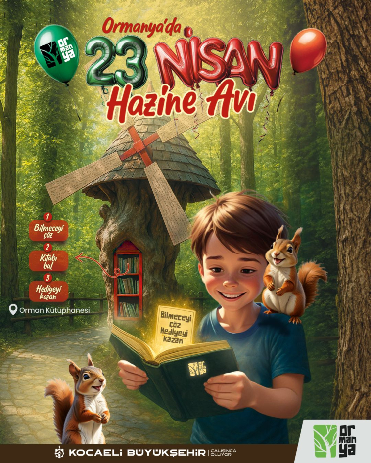 Çocuklar, Orman Kütüphanesi’nde düzenlenecek ödüllü hazine avında şifreleri ve bilmeceleri çözmek için yarışacak. Bu kapsamda çocuklar, kitap sayfalarının içine saklı gizli notları bularak, bayram hediyelerini alacak. Kitaplıklar arasında kaybolacak çocuklar hem eğlenecek hem de öğrenecek.