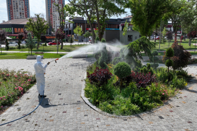 Konya'da yeşil alanları ilaçlamaya devam