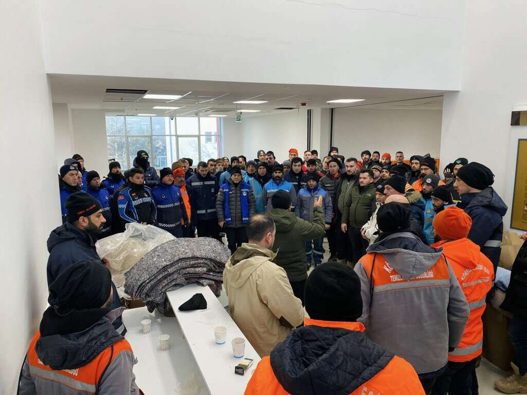 Başkan Söğüt Kahramanmaraş’ta AFAD İl Koordinasyon Merkezi’nde görev alırken, dün itibariyle de Körfez Belediyesi’nden 89 personel bölgedeki belediyecilik hizmetleri ve yardım dağıtımında görev almak üzere bölgeye ulaştı. 89 personel ile birlikte; 2 adet ekskavatör, 2 kazıcı yükleyici, 2 adet çekici, Mobil Aşevi, 5 kamyonet, 1 akaryakıt aracı, 5 adet minibüs ve binek araçlar ile seyyar cenaze aracı da bölgede görev almaya başladı.