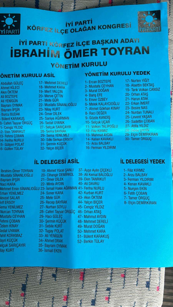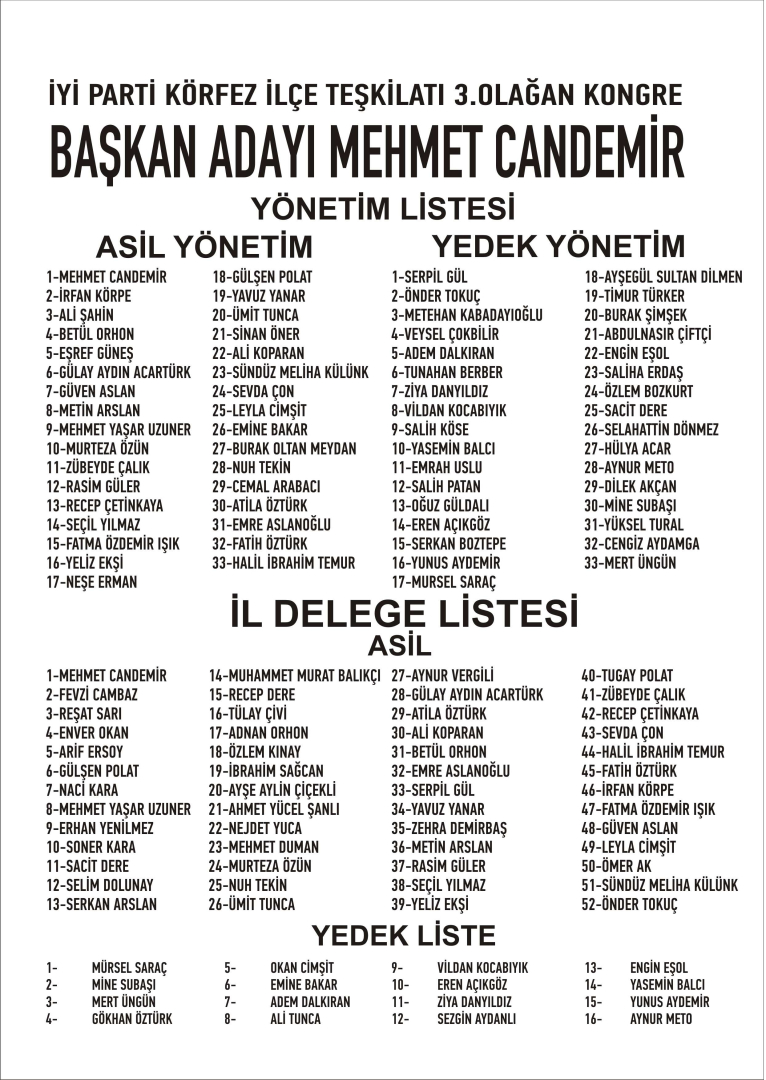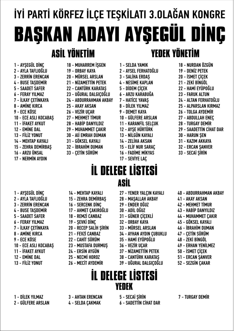 KÖRFEZ İYİ PARTİ'DE ÜÇ ADAYIN LİSTESİ
