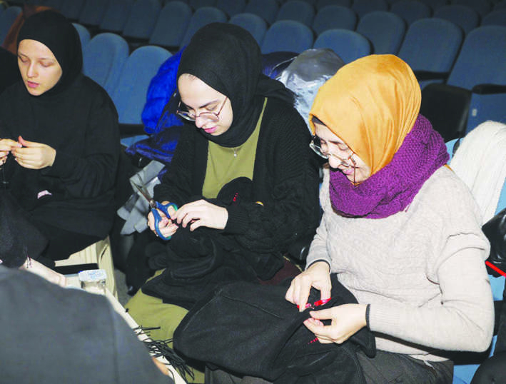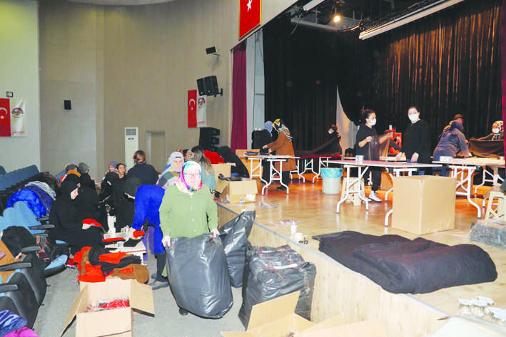 Körfezli kadınlar, deprem bölgesi için kültür merkezinde atkı, bere ve battaniye üretiyor. Gönüllü bayanlar, 24 saat boyunca ara vermeden çalışma yürütüyor
