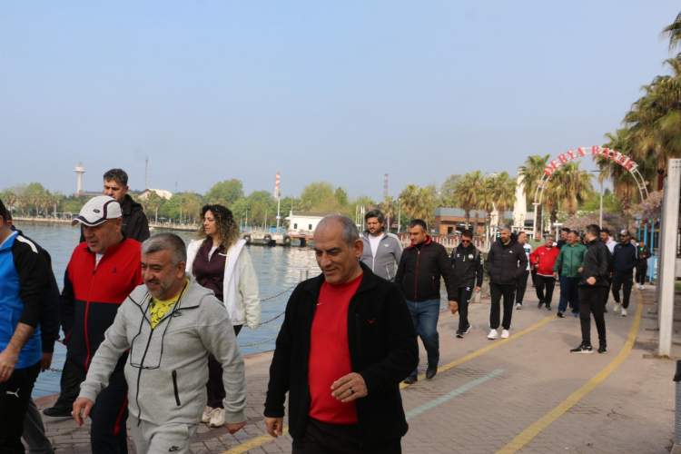 Tütünçiftlik Nazende Sosyal Tesisleri önünde bir araya gelen topluluk, ilk olarak ısınma hareketlerinde bulundu. Isınma hareketlerinin tamamlanması ile birlikte yürüyüş başladı ve katılımcılar Tütünçiftlik sahil boyundan Derince Harikalar Sahili’ne kadar devam etti.